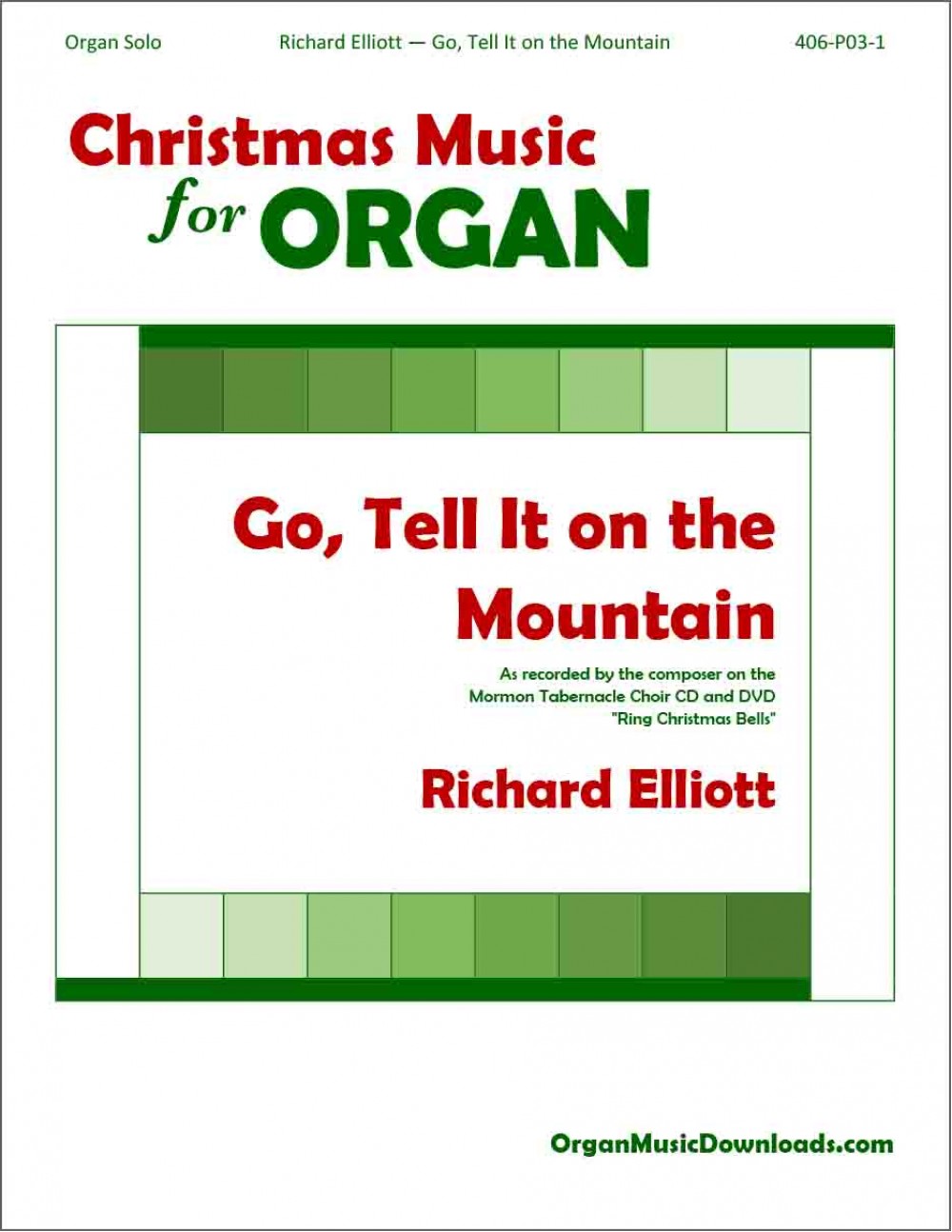 You'll have fun playing Richard Elliott's jazzy finger-snapping toe-tapping setting of "Go, Tell It on the Mountain" (as recorded by the composer on the Mormon Tabernacle Choir CD and DVD, "Ring Christmas Bells").