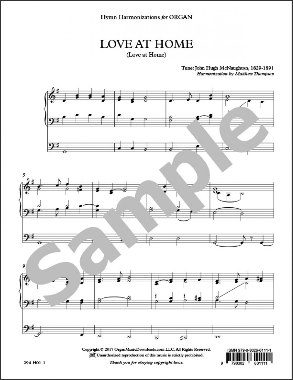 Matthew Thompson's thoughtful harmonization of the hymn tune LOVE AT HOME (Love at Home), is a perfect harmonization for the final verse of the hymn.